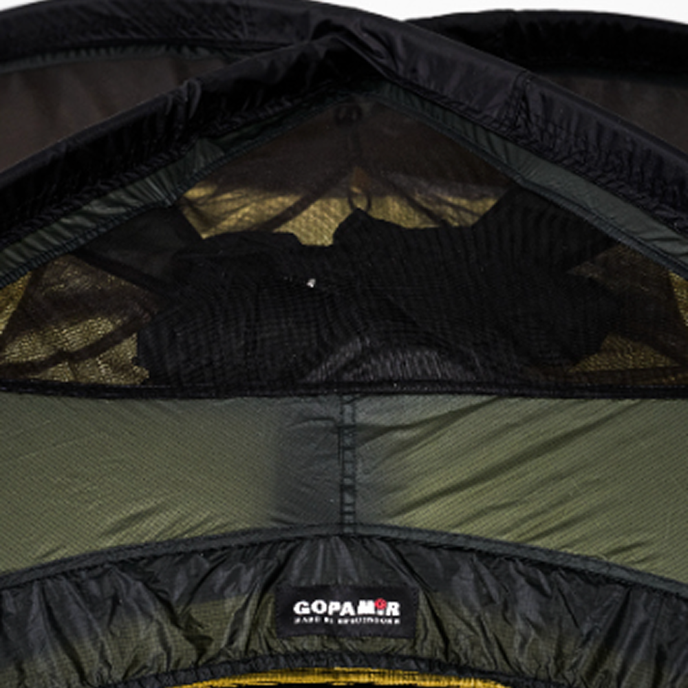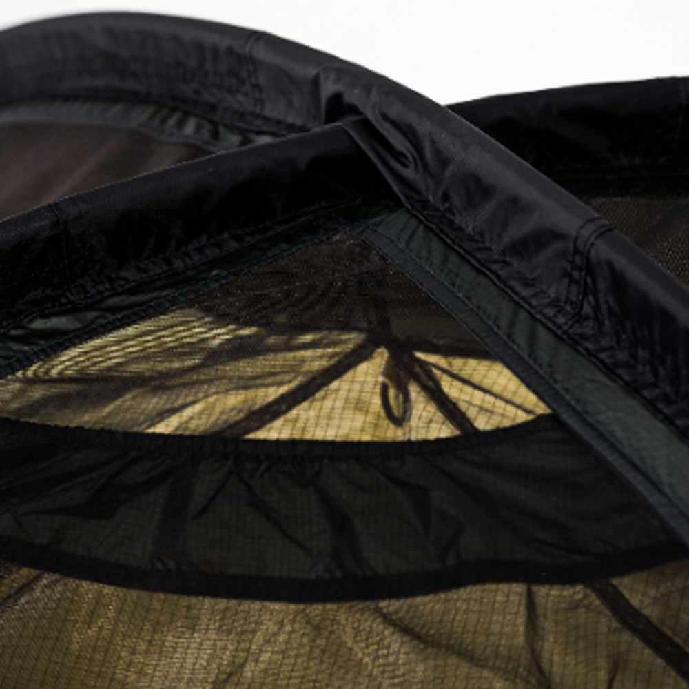 The mesh and TPU window panel can be attached to the front zipper of the main skin.