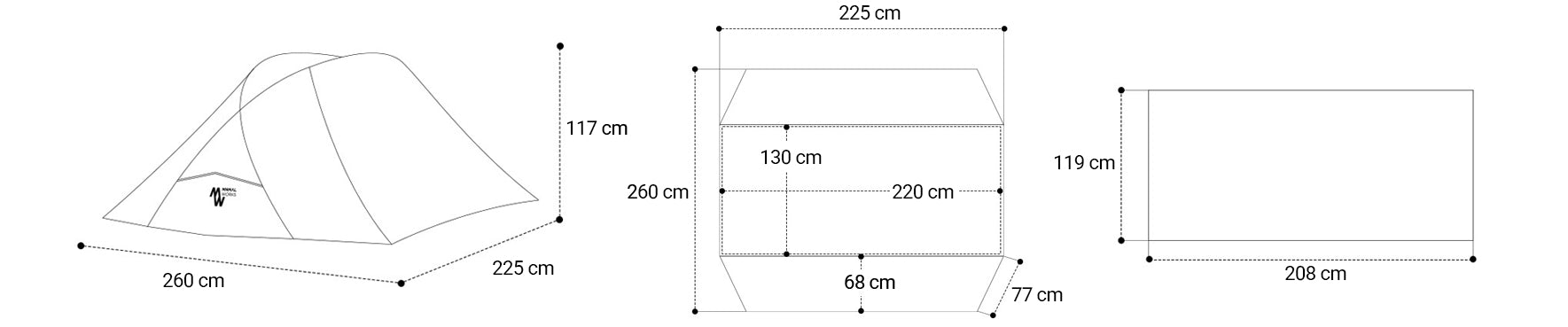 • Inner Tent Floor: Nylon 15D Ripstop PU/SIL 3,000mm
