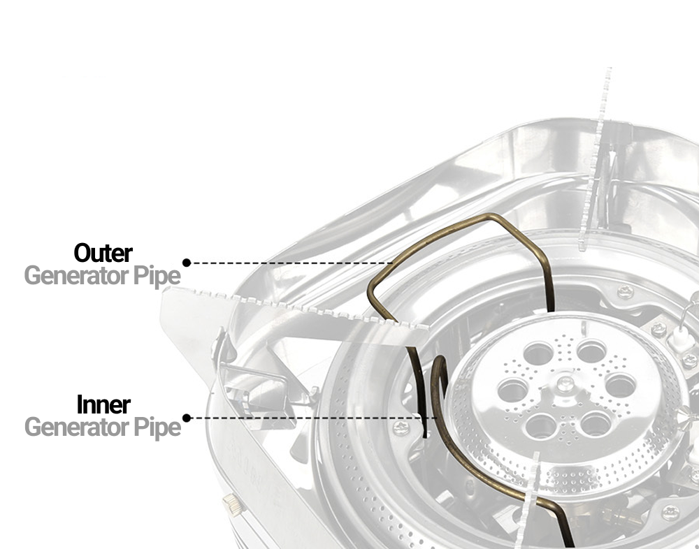 A built-in generator pipe ensures stable gas circulation, maintaining consistent heat and efficient combustion even in varying conditions.