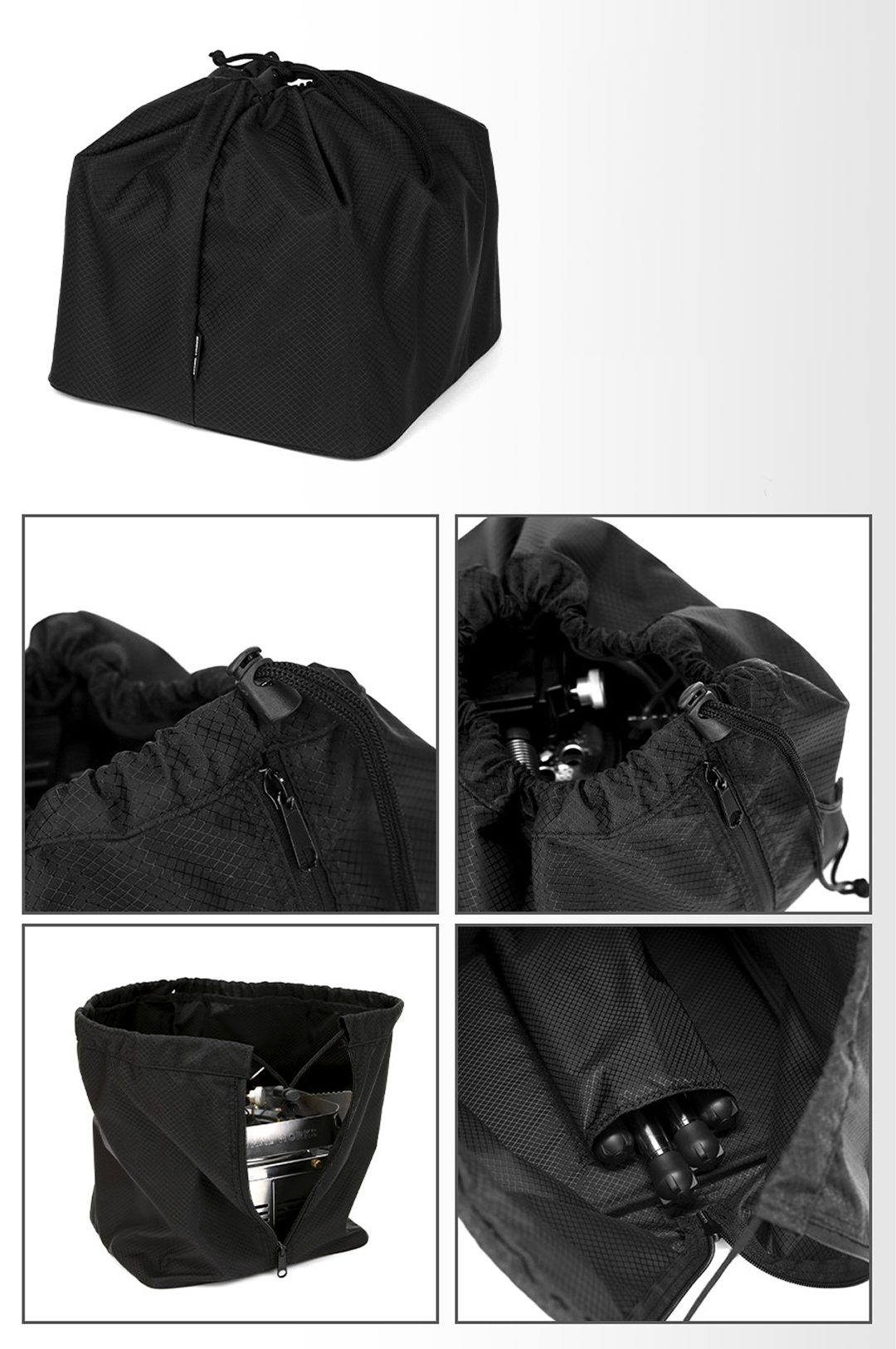 When you purchase the Dual Power Stove D, a dedicated carry bag is included for easy storage and transport. Made with durable ripstop fabric, the bag resists external dirt and damage. A pocket on the bottom allows separate storage of the legs, keeping the stove body and legs organized. This design protects the stove and adds convenience when carrying it outdoors.