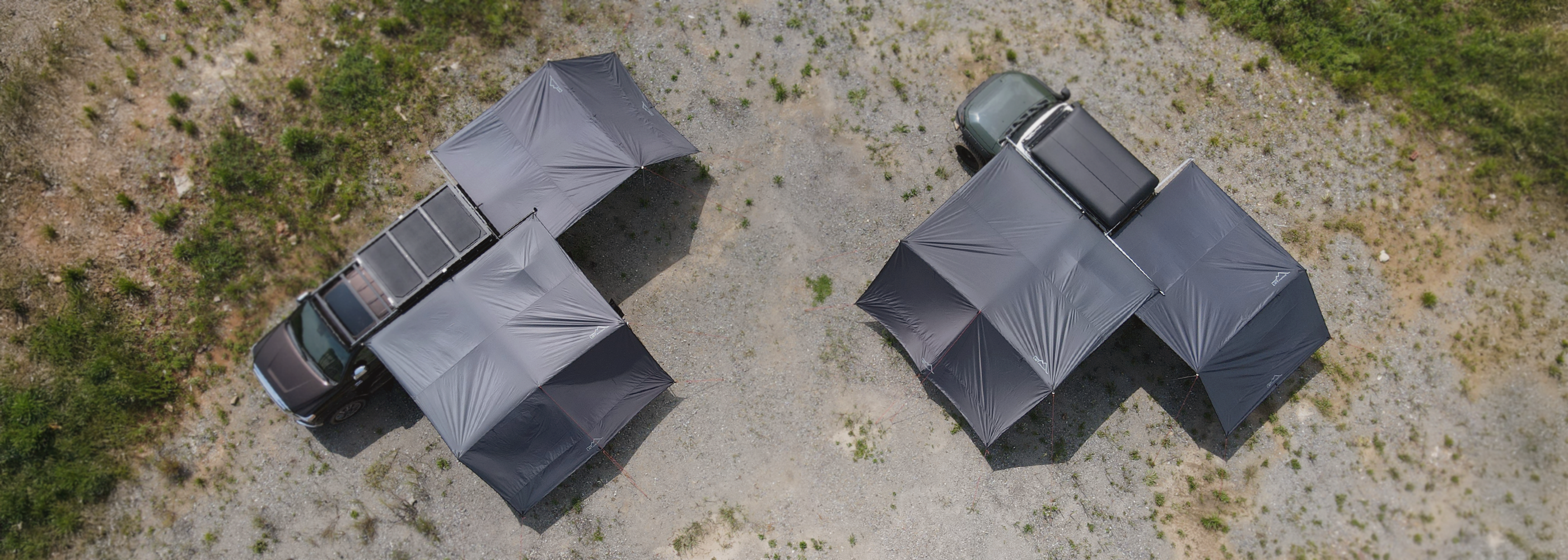 The ES Awning Frame comes in two size options — 2000 and 1300. Typically, the 2000 frame is installed on the side of the vehicle, while the 1300 is mounted at the rear. With both frames installed, you can mount the ES 2000 and ES 1300 Awning Tarps together for full coverage, or mount the LNT 280 Awning for a wider 280-degree shelter.