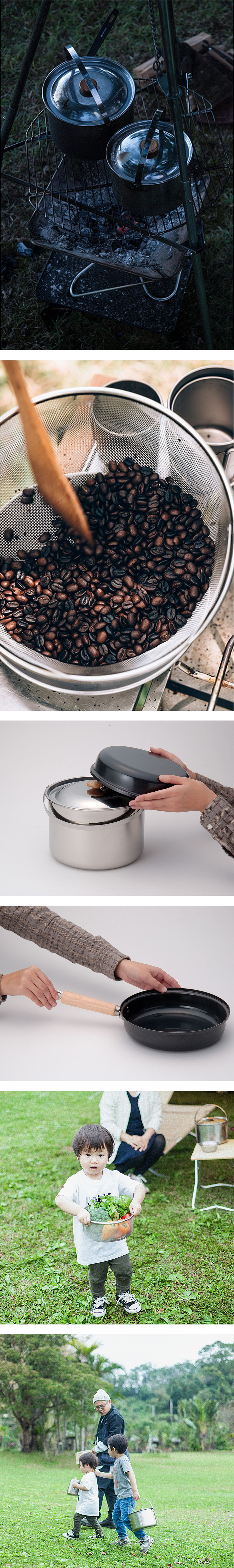 • Pro.3 Set: Pot * 2, Pan * 1, Handle * 1, Strainer * 1, Pot Holder * 1, Storage Bag & Cases * 1