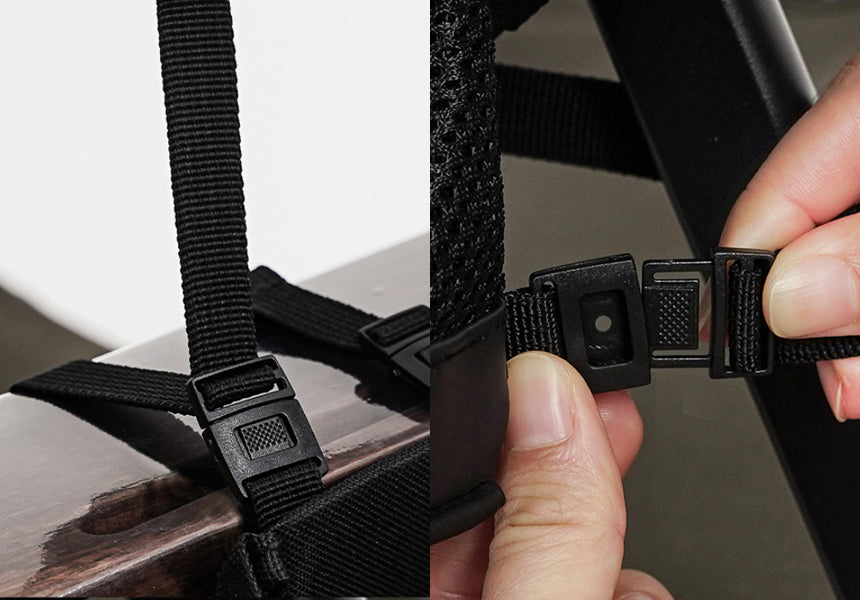 Attach the two top buckles to the armrest.
