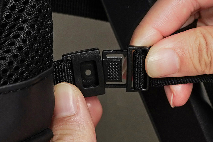 Fasten the bottom buckle and adjust the strap for a secure fit.