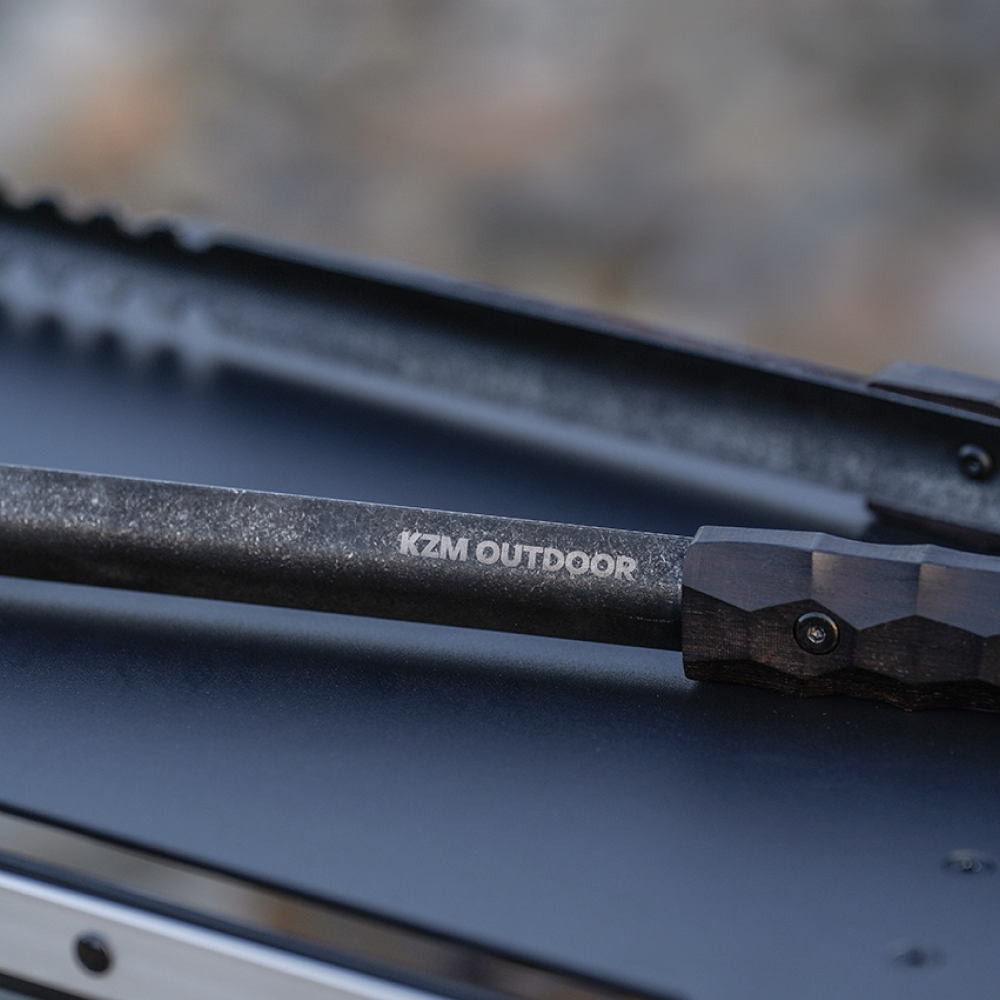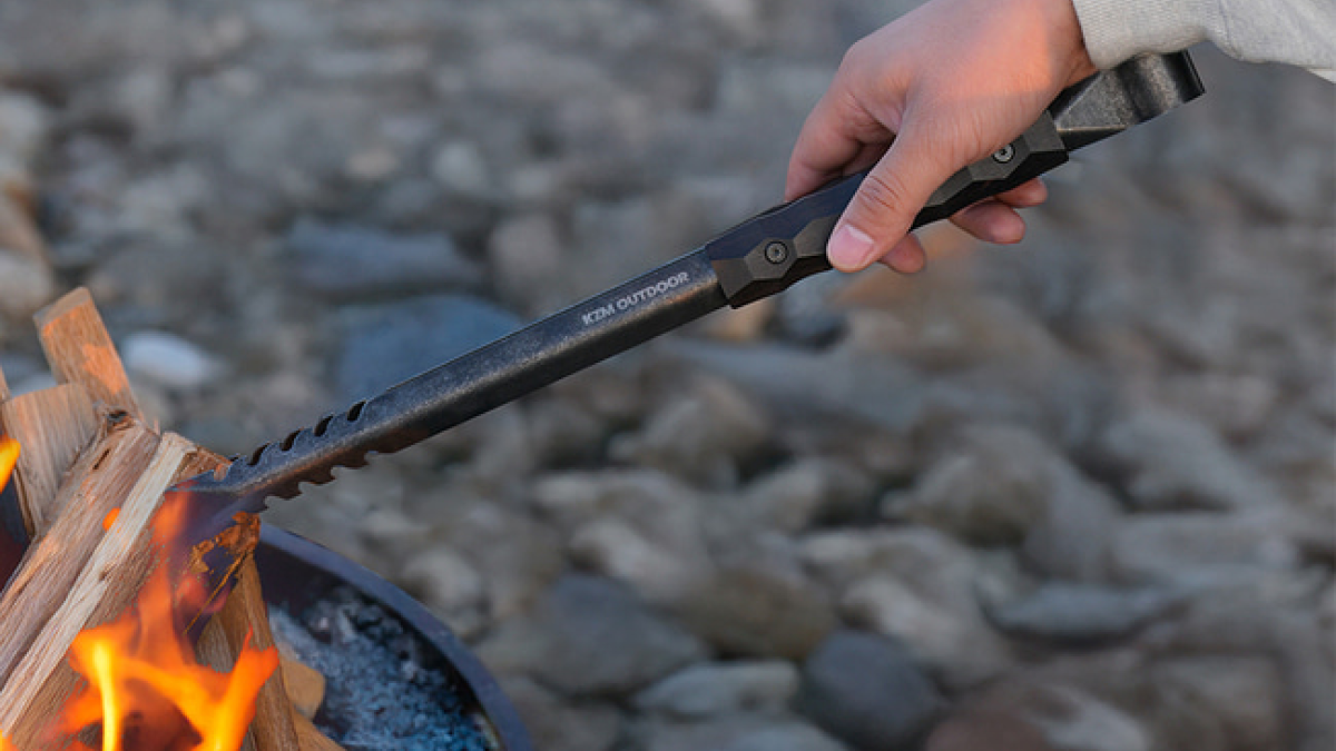 The Field Renocan Tongs are durable camping tongs made from corrosion-resistant stainless steel with an ergonomic birch wood handle and a rugged Wild Field design.