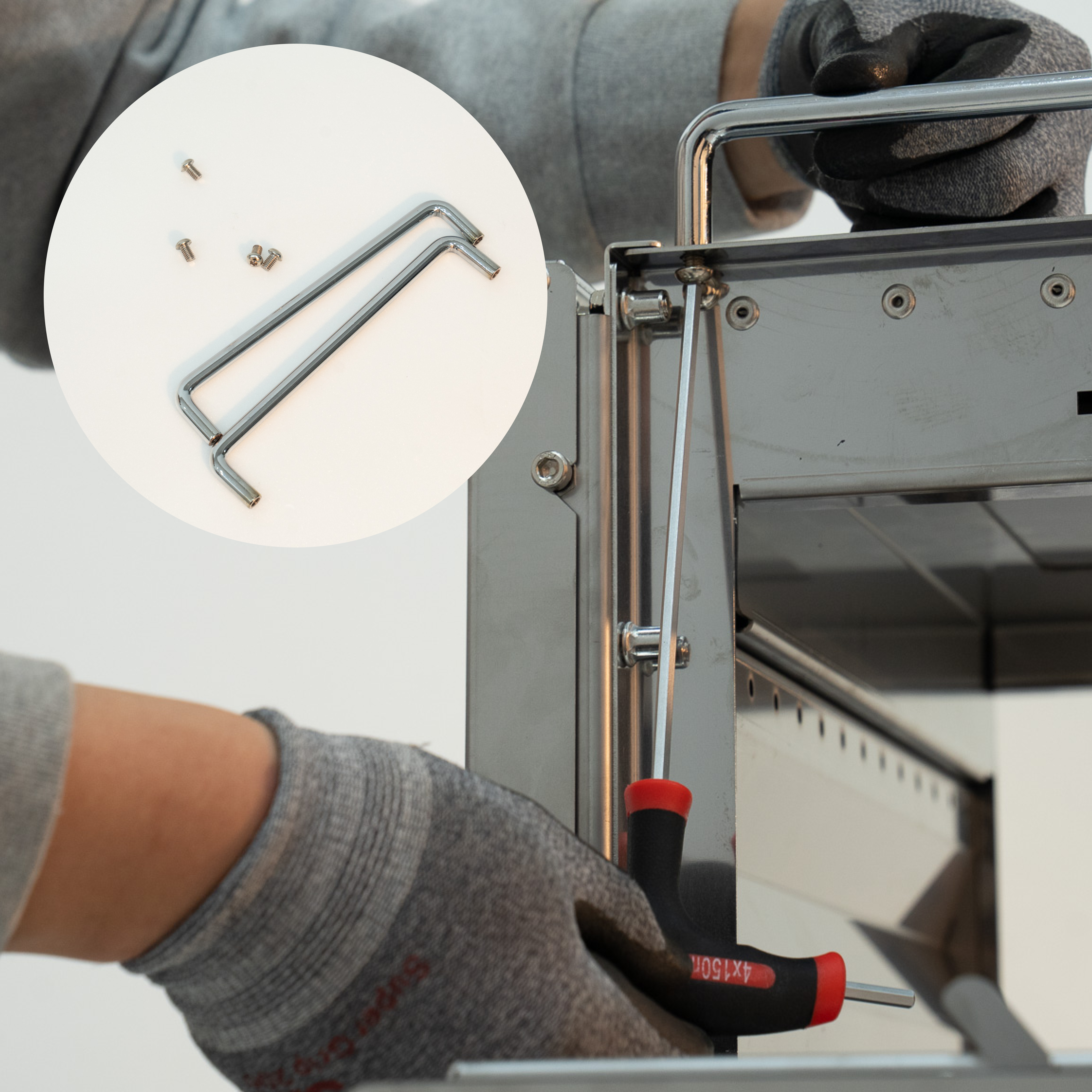 The stainless steel plates are laser-cut and folded, resulting in sharp, 90-degree cut edge. Please wear protective gloves when handling the product.