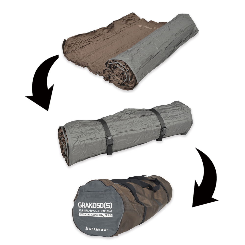 The Grand 50 - Single is a premium single-size outdoor mat with 50D stretch fabric, 2.9"(7.5cm) high-density PU foam, 3D sidewalls, TPU coating, non-slip base, and roll-up storage for ultimate comfort and convenience.