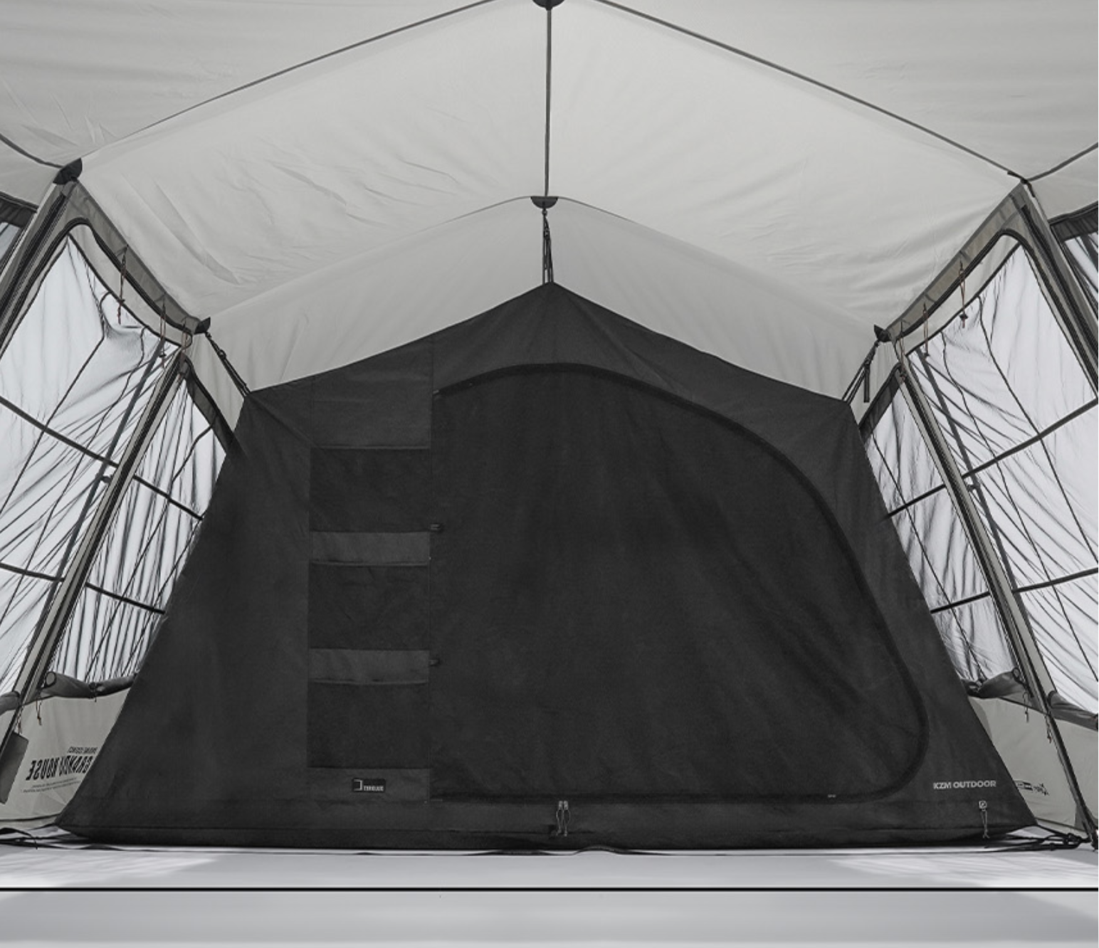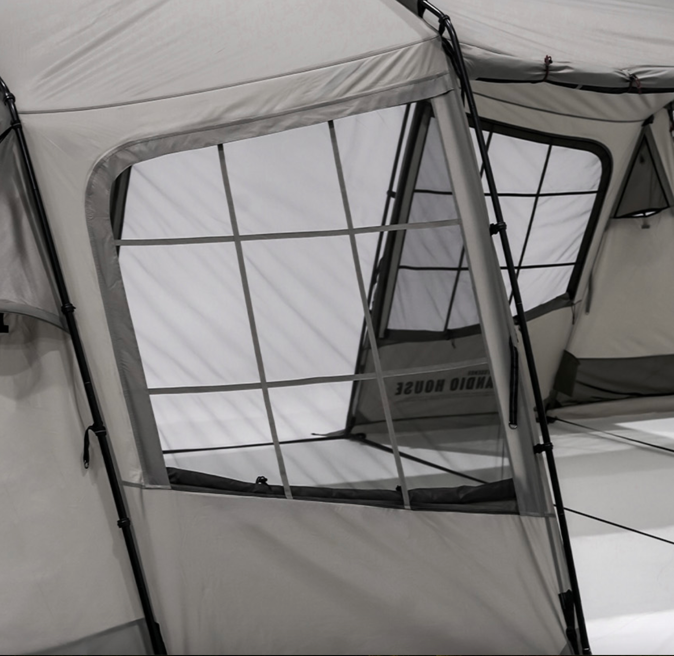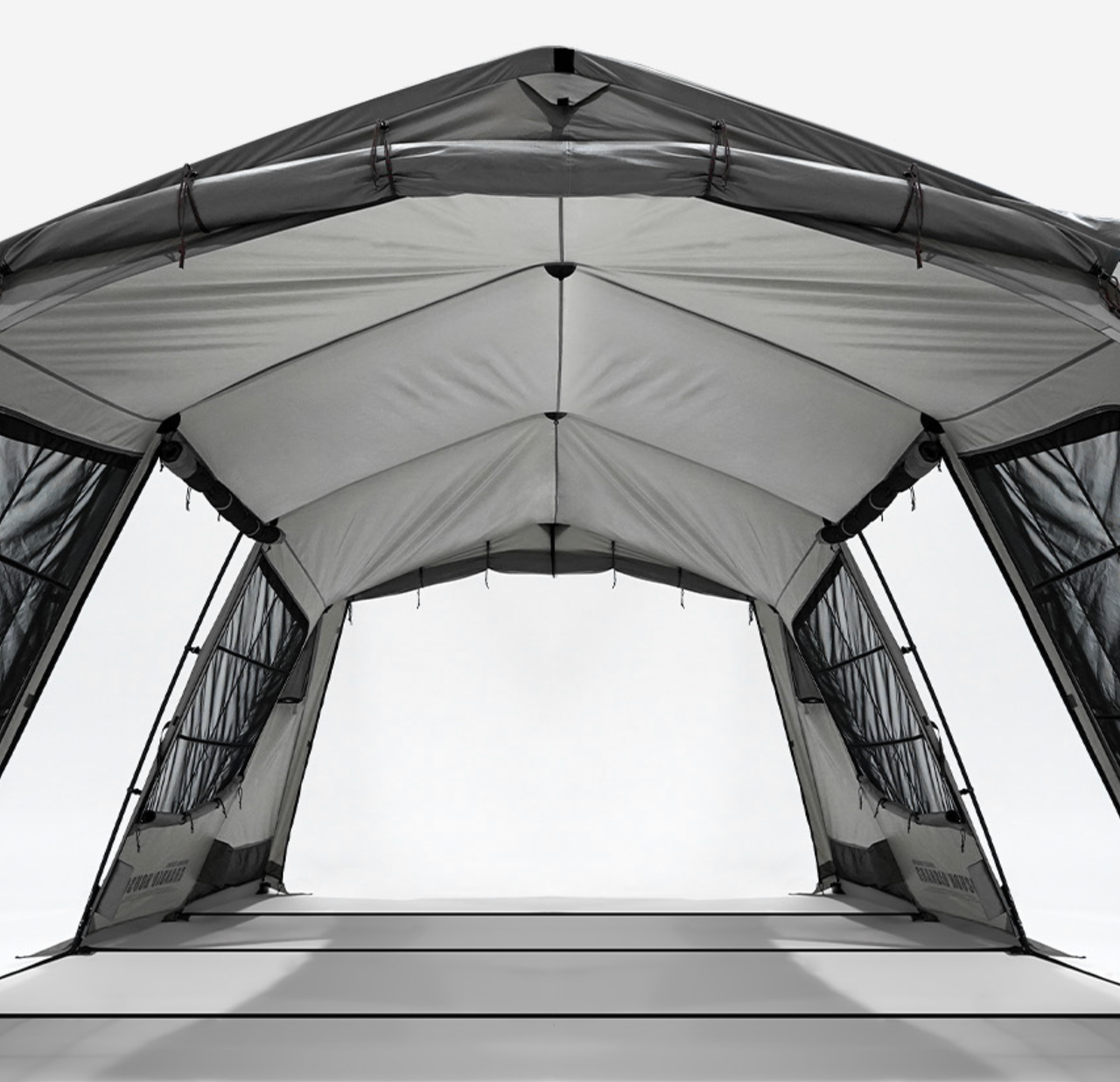 A spacious house-style tent designed for comfort, airflow, and flexibility. Liftable panels, modular doors, and mesh windows create a bright, open living space, without sacrificing protection. Perfect for extended camping and family setups.