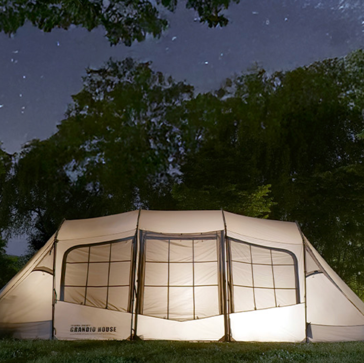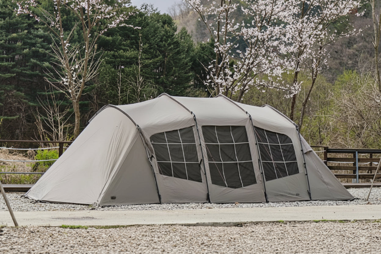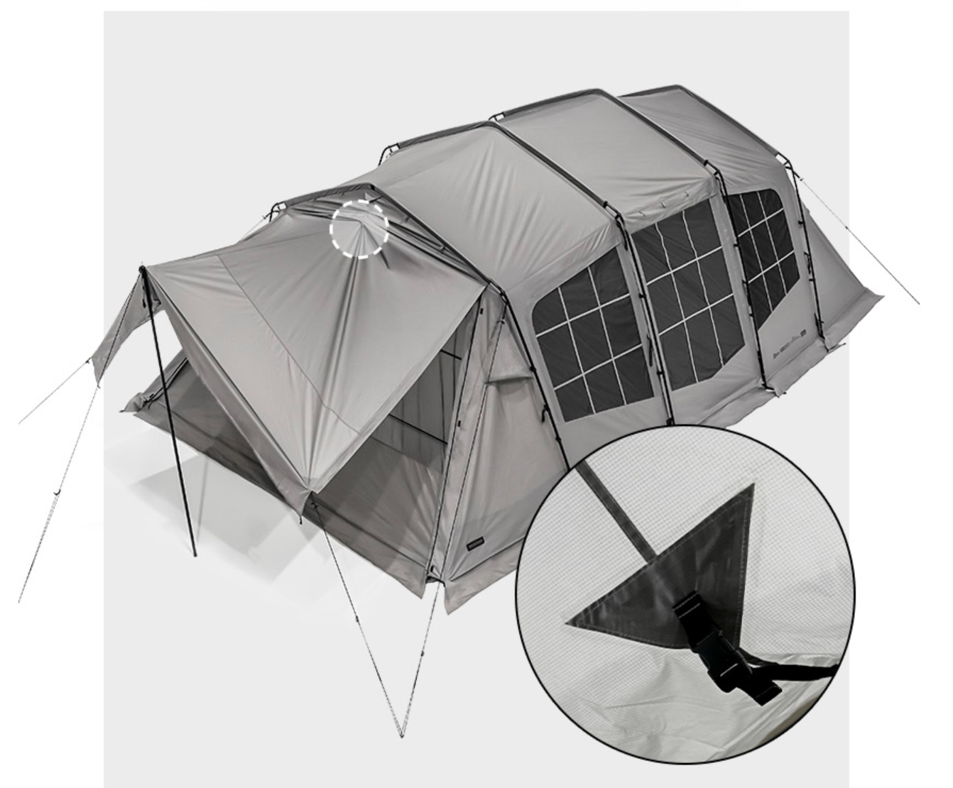 A spacious house-style tent designed for comfort, airflow, and flexibility. Liftable panels, modular doors, and mesh windows create a bright, open living space, without sacrificing protection. Perfect for extended camping and family setups.