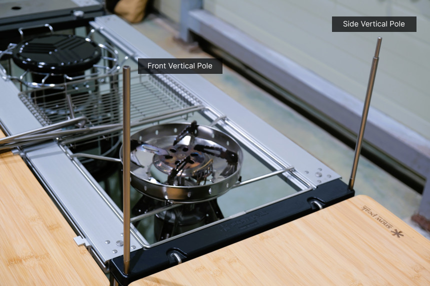 Default package includes: Kitchen Hanger (Left, Right), Double Hanger * 2pc, Side Hanger * 2pc, Front Vertical Pole * 2pc, Side Vertical Pole * 2pc, Unit Extension Pole* 1pc, Joint Set * 4 Set (bolt and nut), T-Joint * 2pc , Pouch