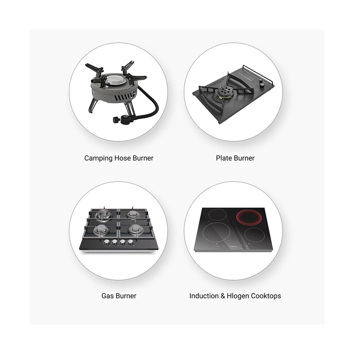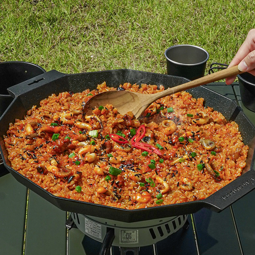 The Ignis Design Pot Griddle X Eol is a versatile griddle with durable 5T aluminum construction, Mega Stone non-stick coating, ideal size and depth, wood handles, and compatibility with various heat sources.
