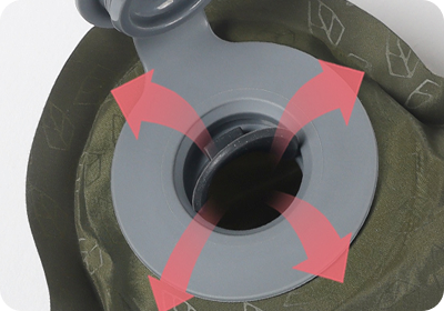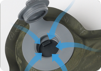 When the outer valve is opened, self-inflation begins. A thin inner membrane inside the cap prevents the injected air from escaping.