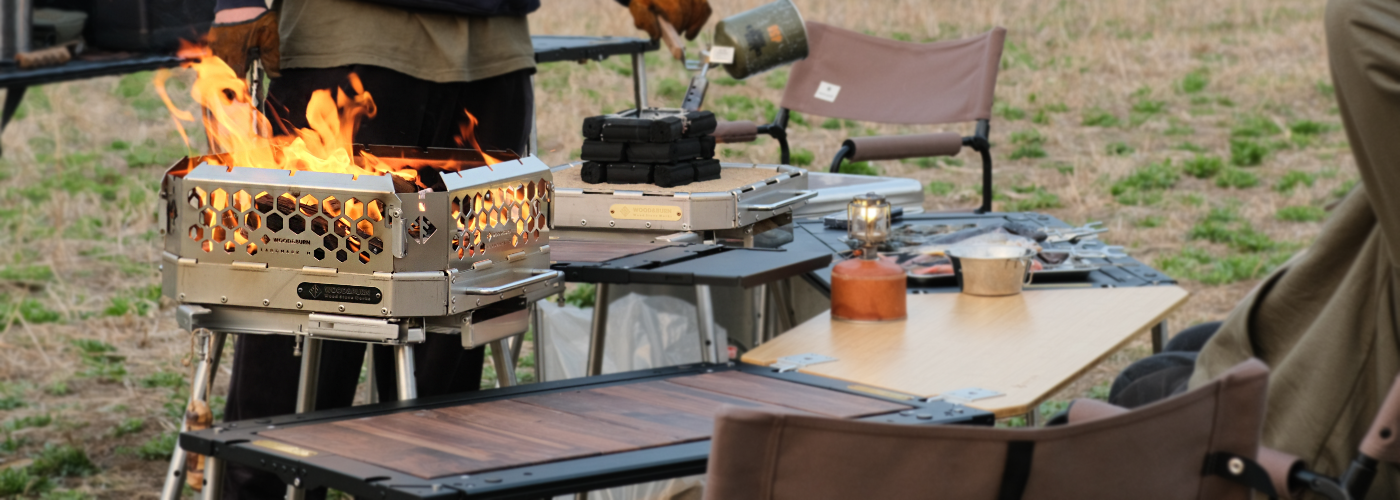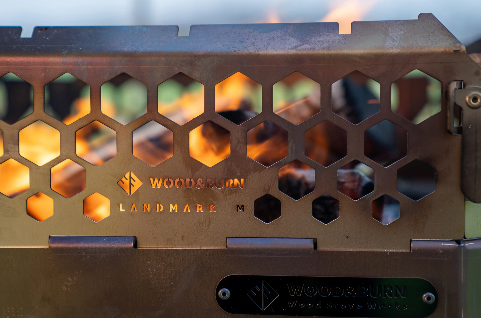 A premium multi-functional fire pit equipped with height adjustment, expansion options, and table compatibility. The Landmark M, the first in the Landmark series to feature height adjustment, allows users to set various heights depending on the chosen legs. It seamlessly integrates with IGT Systems, providing a more convenient and stable camping environment. Featuring accessories like iron plate griddles, crossbars, and skewers, it functions as a complete fire pit for both cooking and campfire enjoyment. Designed with Wood & Burn's engineering technology, the Landmark M ensures a comfortable camping experience all year round.