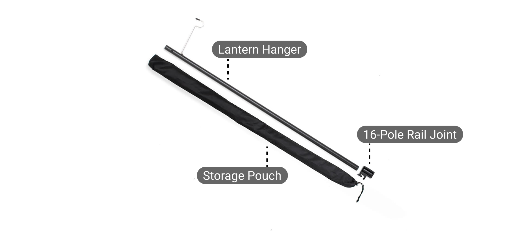 Package Includes: Lantern Hanger * 1, 16-Pole Rail Joint * 1, Storage Pouch * 1