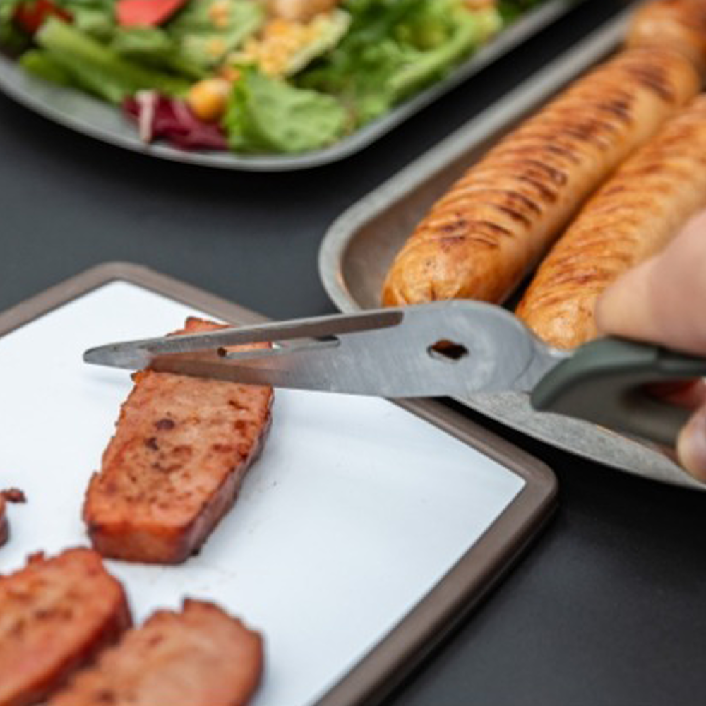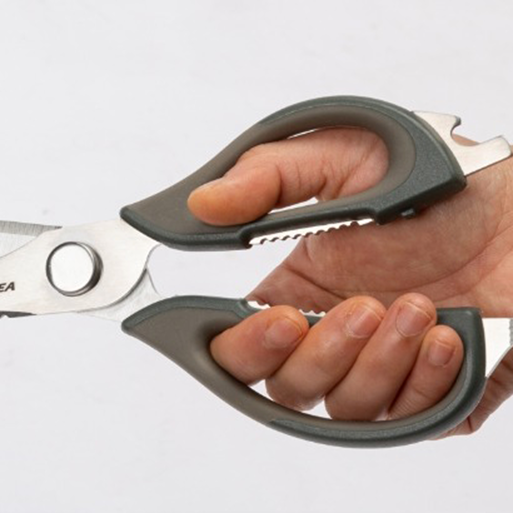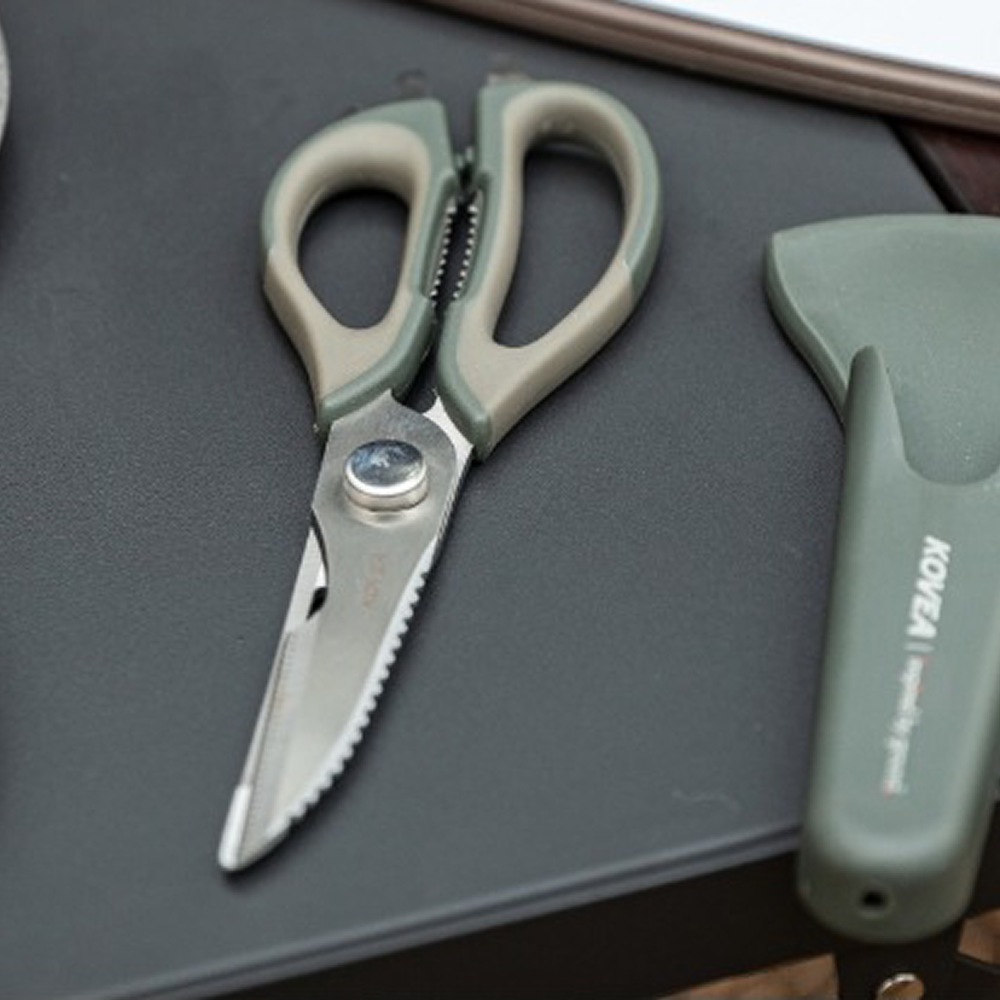 More than just scissors—this tool integrates six practical functions in one: bottle opener, screwdriver, nut grip, serrated blade, peeler, and knife. From kitchen prep to outdoor cooking, it’s a compact all-in-one essential designed for convenience and versatility.