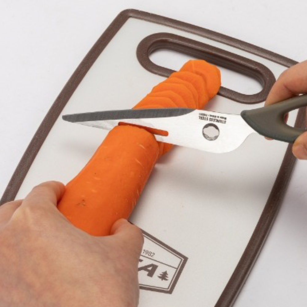 The finely honed stainless blades deliver powerful, precise cutting performance—perfect for slicing through meat or tough materials. The serrated inner edge keeps slippery ingredients firmly in place, ensuring clean, stable cuts every time.