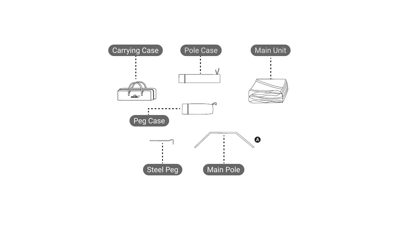 Package Includes: Carrying Case * 1, Pole Case * 1, Peg Case *1, Main Unit * 1, Steel Peg * 4, Main Pole * 2