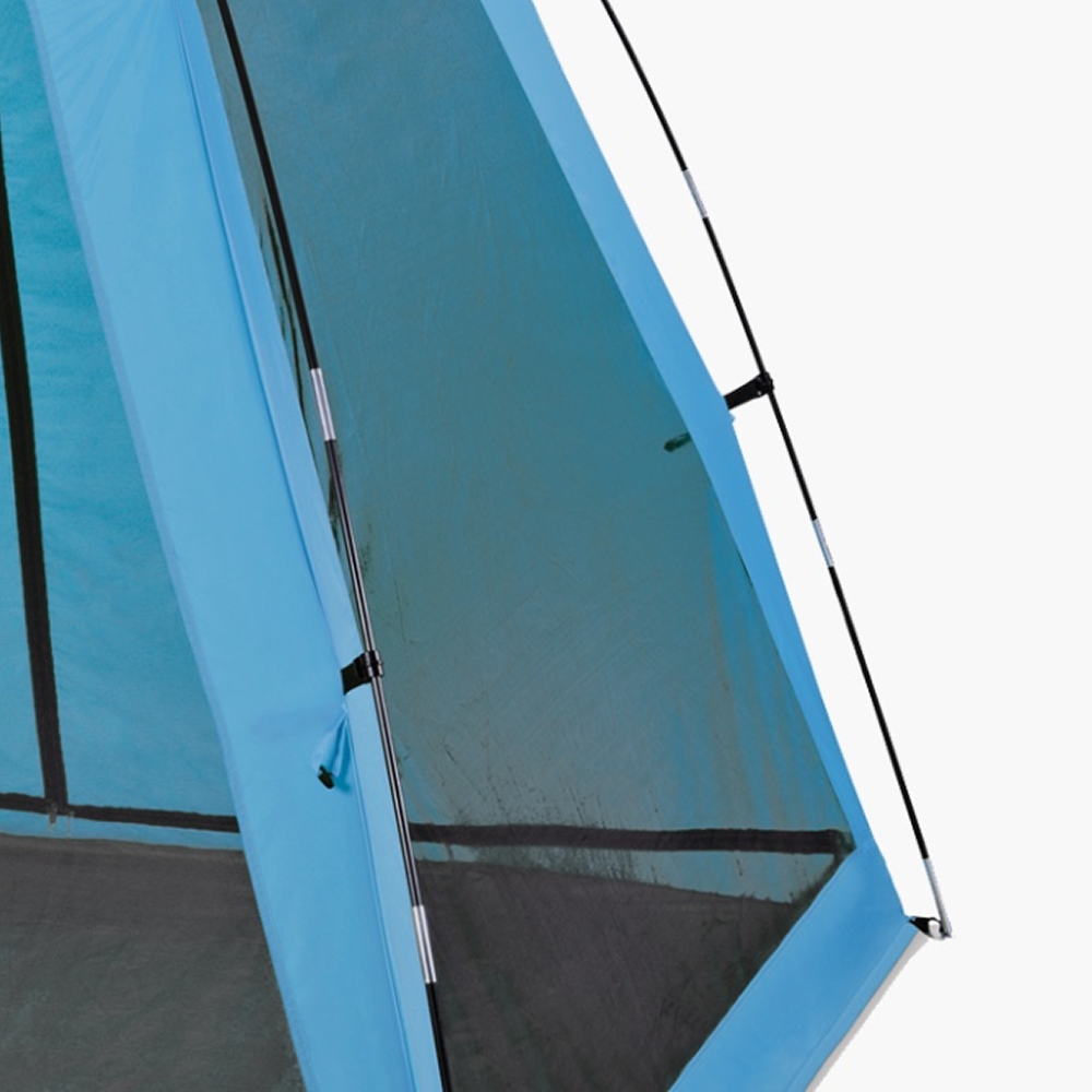 In addition to the front and rear mesh doors, supplementary mesh windows are integrated on the sides of the shelter. This design further facilitates excellent internal airflow, ensuring a cool and comfortable environment even in hot weather.
