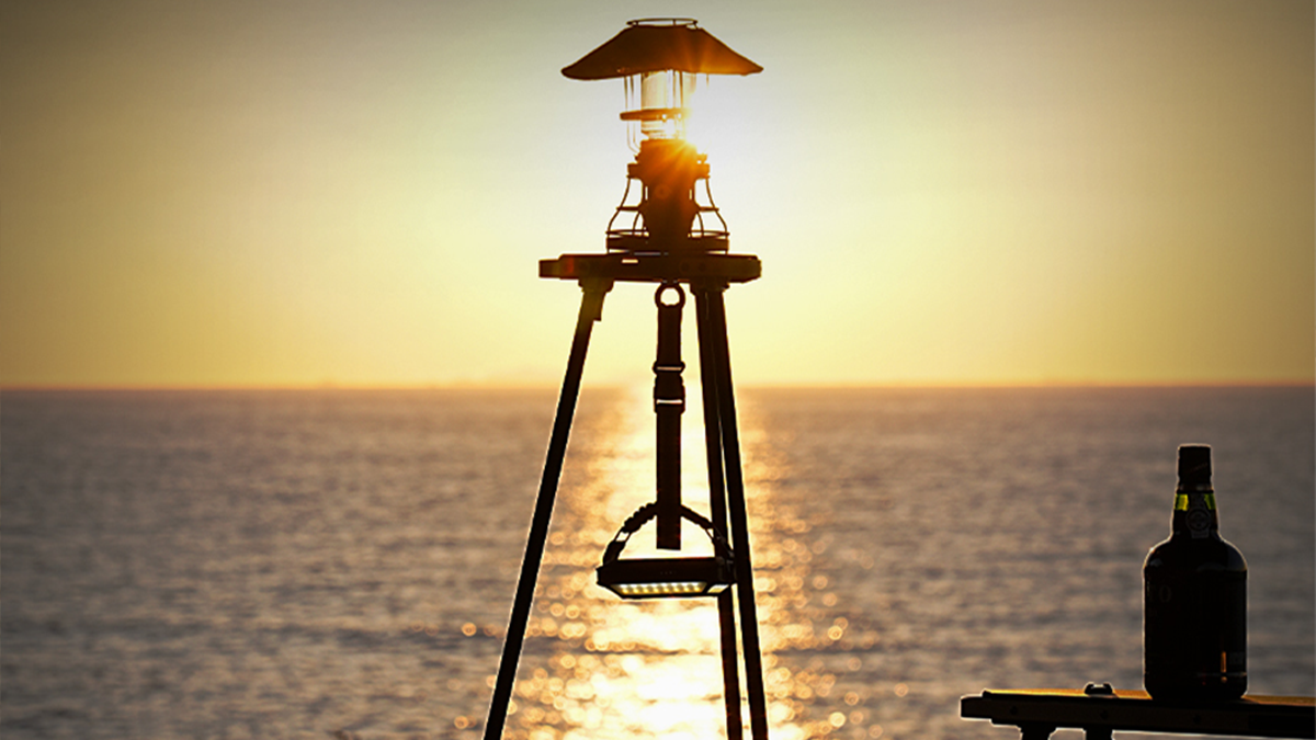 The One Tower Stand is a height-adjustable aluminum stand that can hold lanterns or gear, convert into a table, and store easily in a breathable mesh case.