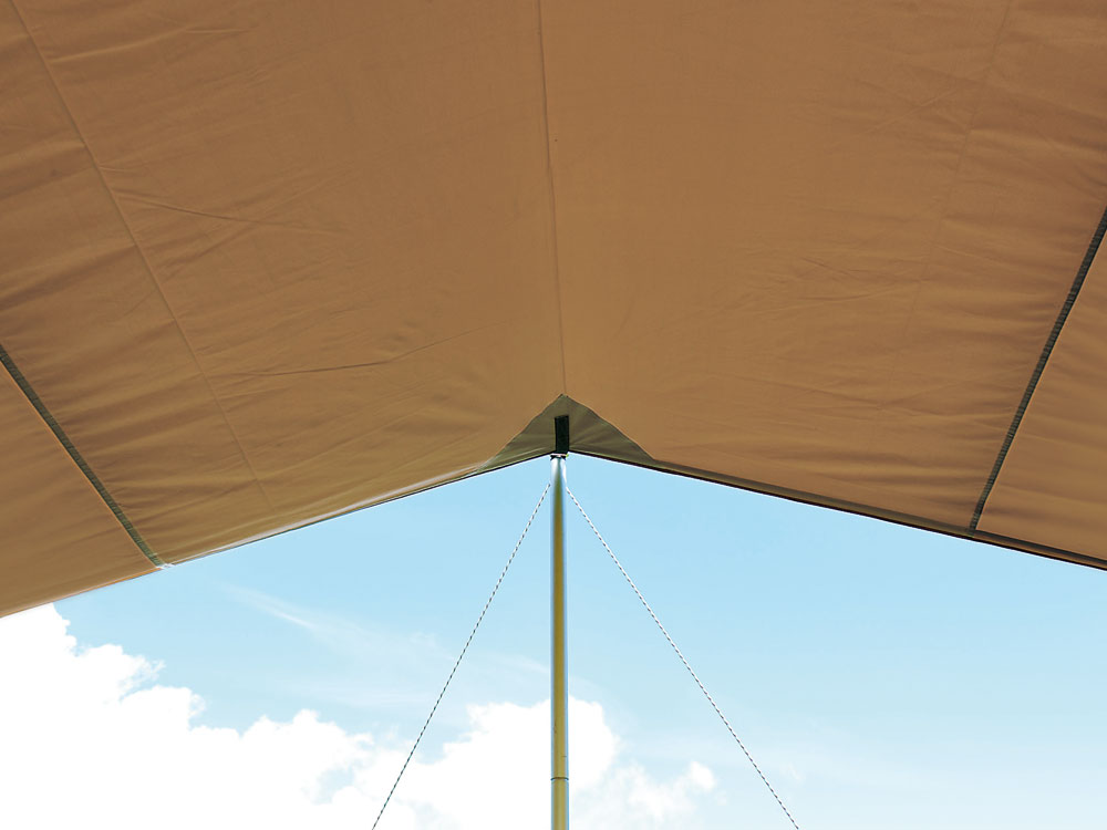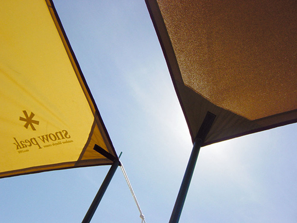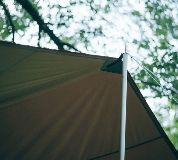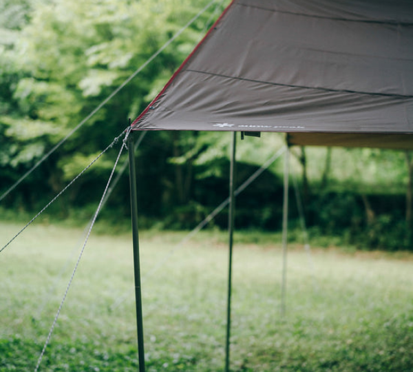 The Japanese-designed Recta Tarp L Set in Large includes the large Recta Tarp and all required pieces for set-up. Use the eight person tarp for larger outdoor gatherings, regardless of season. The HD construction is engineered to more efficiently channel rainfall and withstand wind pressure. Shield processing applied to the fabric provides additional UV protection and shading, that can feel 2-4 degrees cooler than tarps without. The Set includes Solid Stakes, Poles, Copper Head Peg Hammer and Carry Case.