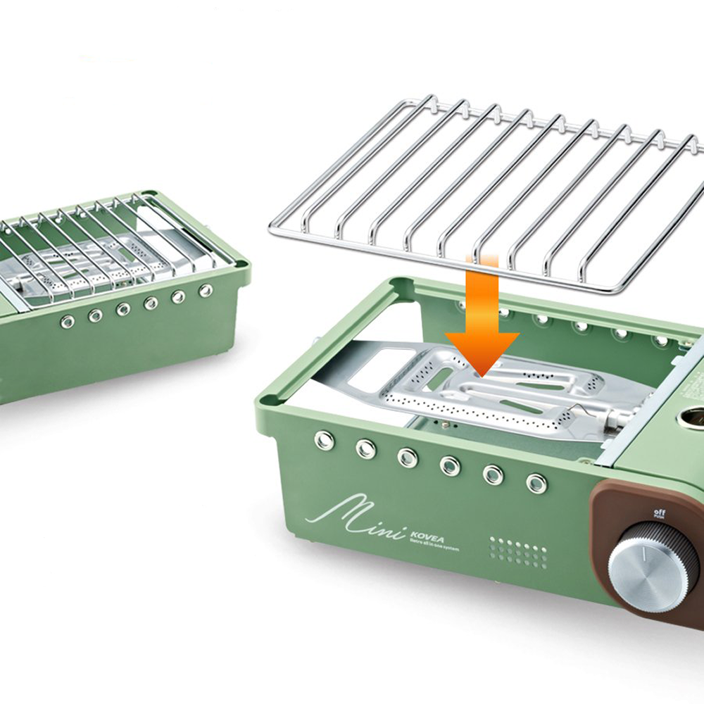 This stove features a retro-inspired, grill-style trivet that easily attaches to the main body. Its robust design allows you to use a variety of cooking vessels, from small pots to large skillets. The trivet is simple to attach and detach, making cleanup and setup a breeze.