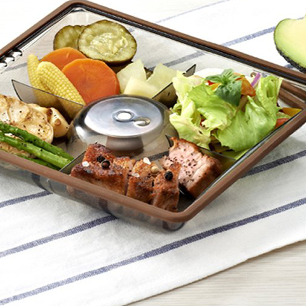 This accessory, made from body-safe PC (Polycarbonate) material, serves a dual purpose: it acts as a secure lid during cooking and flips over to become a sectional serving bowl afterward. The transparent PC allows you to monitor your food as it cooks, while the heat-resistant wood handle and silicone outer rim ensure safe handling without getting hot.