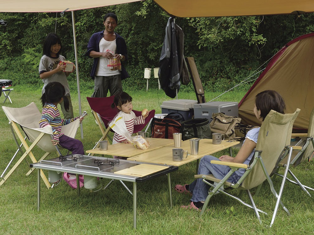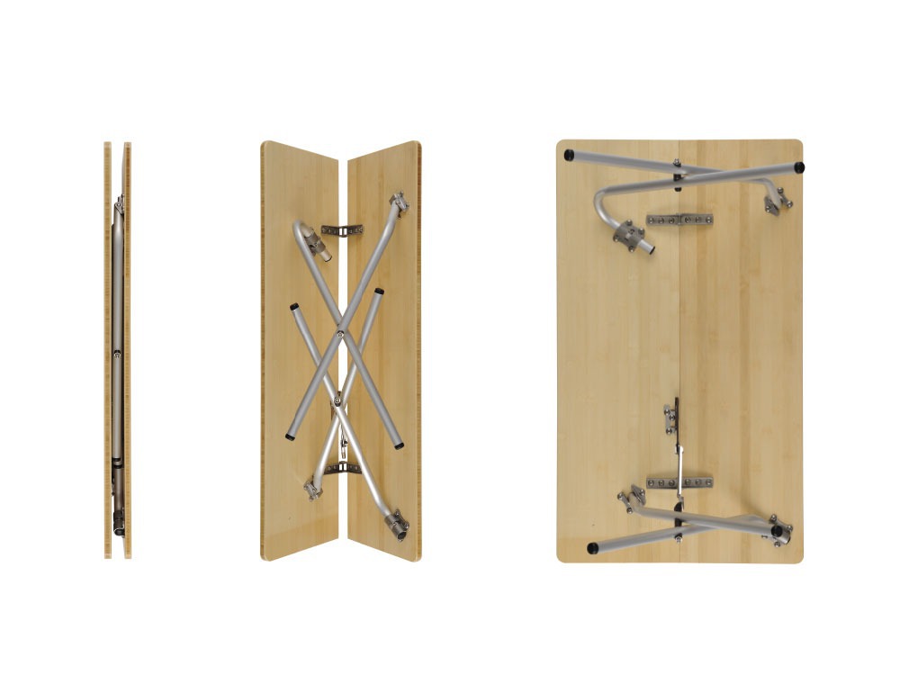 Designed in Japan, the Renewed Single Action Table Low features a laminated bamboo top in an updated finish and stable aluminum legs.