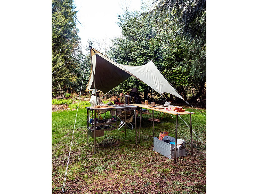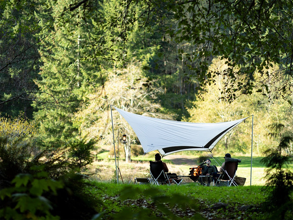 The Takibi Tarp Hexa Set M is designed to create fireside gatherings in every season.