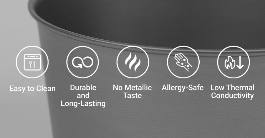 The MinimalWorks Titanium Stacking Mug 380 is lightweight, durable, and compact for outdoor dining. Its titanium build prevents corrosion and metallic taste, making it safe and reliable for everyday use.