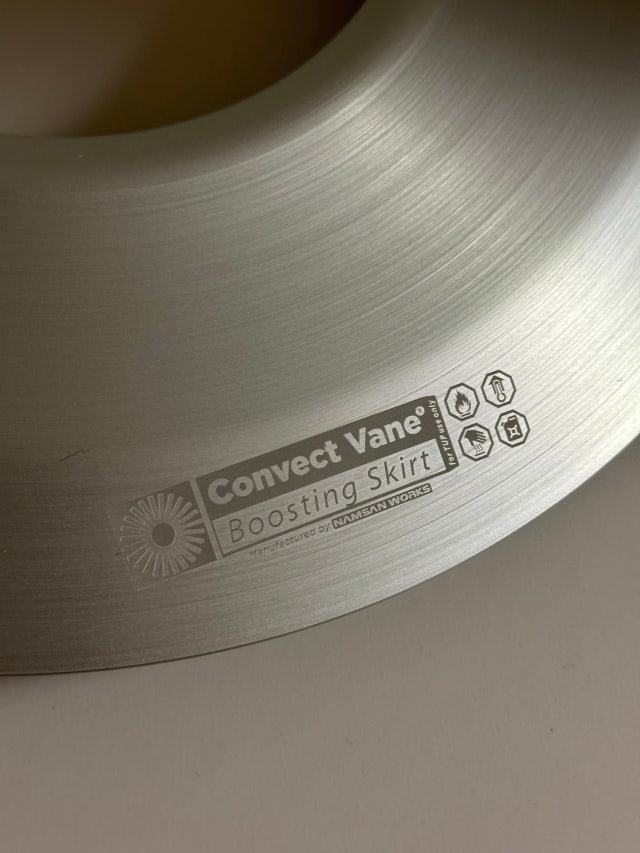 The Boosting Skirt was developed to improve the TUF MK2’s rotation performance and minimize start-up time. By guiding the rising heat from the sides of the kerosene heater more efficiently into the thermoelectric module, the skirt ensures faster ignition, higher RPM, and stronger airflow from the very beginning.