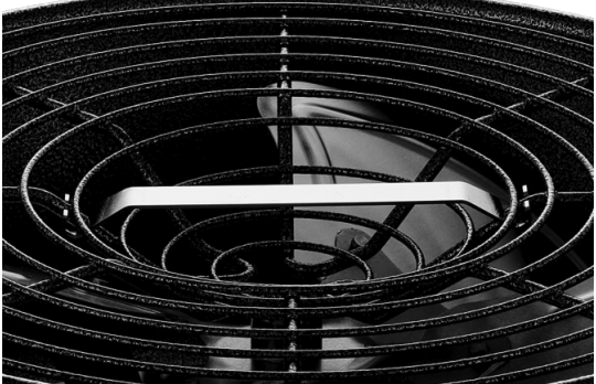 The TUF MK2 uses a concave, inward-bent top grill that allows air to flow smoothly into the fan while giving you a secure, comfortable grip when lifting or repositioning the unit.