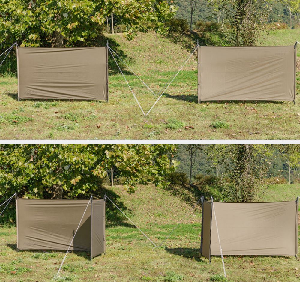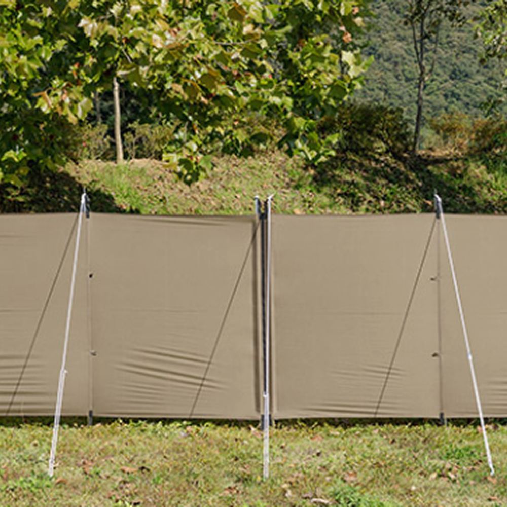 The Wind Screen II creates a customizable outdoor space, featuring versatile buckles and zippers to connect or separate panels, delivering reliable shelter from wind and sun with a stable, ground-anchored setup.