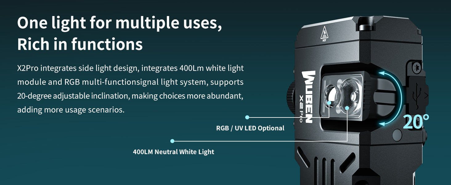 Wuben X2 Pro(UV side light)for EDC, Emergency, Helmet, Signal, UV, Tactical